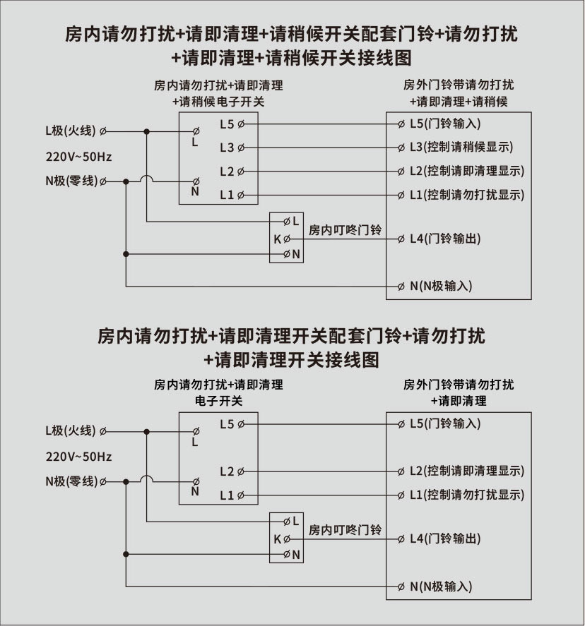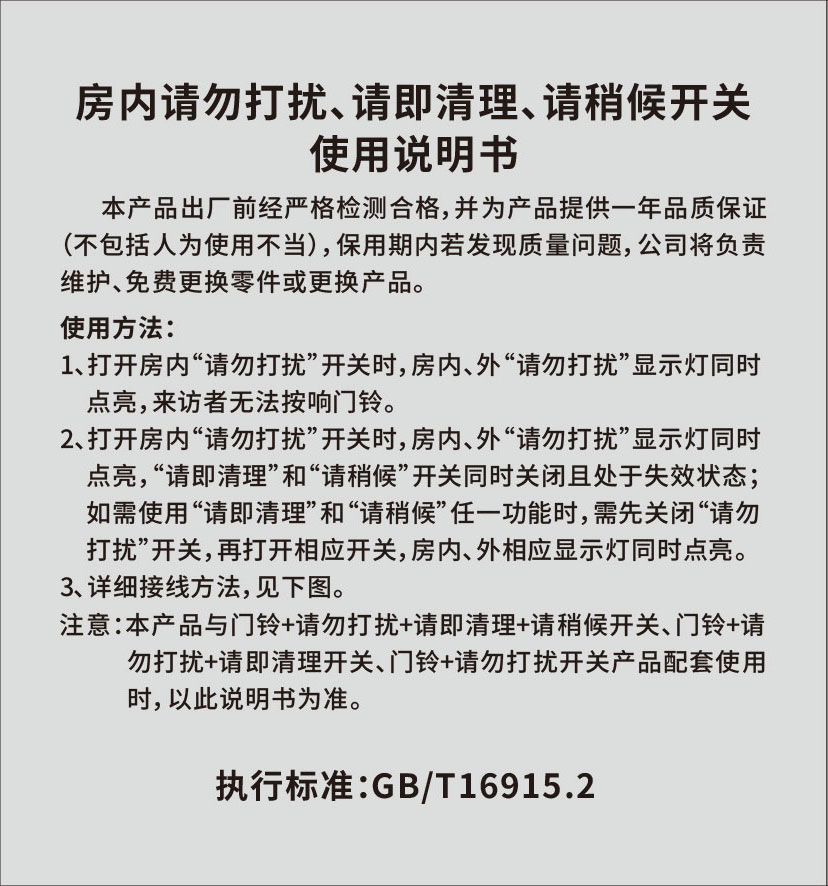 房内请勿打扰、请即清理、请稍候开关