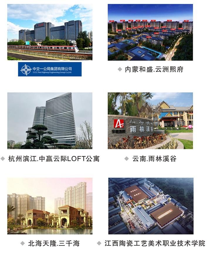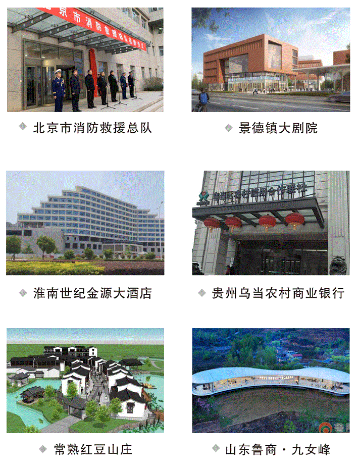家的中标的多个工程项目,涵盖全国各地的酒店、宾馆、别墅、银行、消防、剧院、学院等。