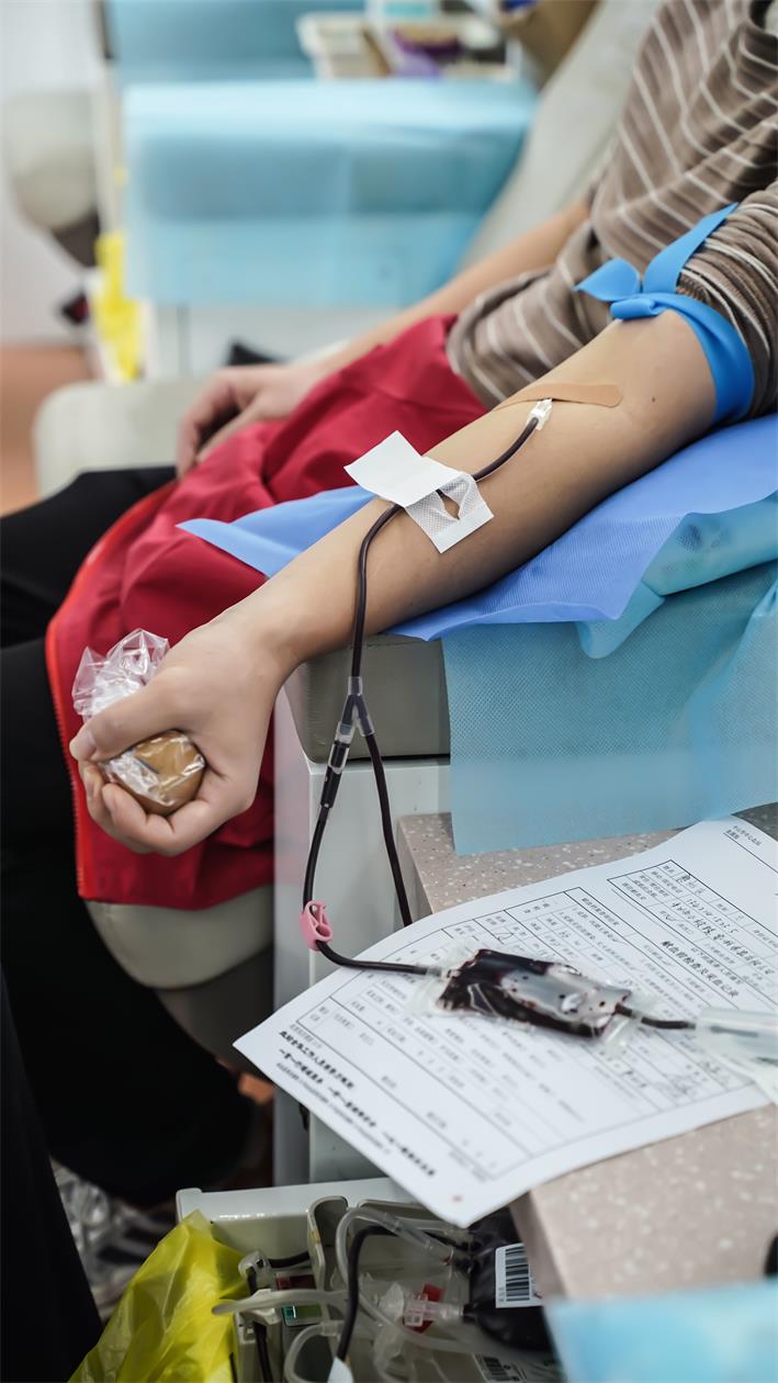 有的员工以前献过血,显得淡定。而有的员工则是第一次献血,难免有些小紧张,经过医护人员的鼓励,身体渐渐放松下来。满含爱的热血缓缓流向采血袋,点亮生命的希望。
