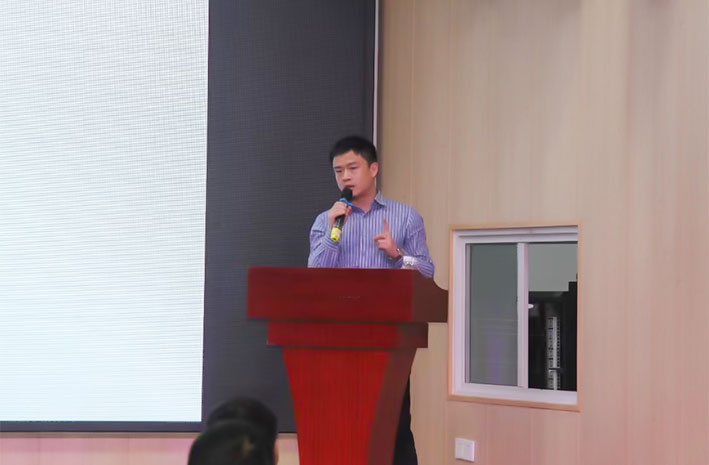 首先,由家的开关豫东河南省运营中心、河南三宝光电科技有限公司总经理李少华上台致辞。他向各位厂家代表、合作客户表示欢迎和感谢,继而他对公司的现状和发展规划进行了分享。