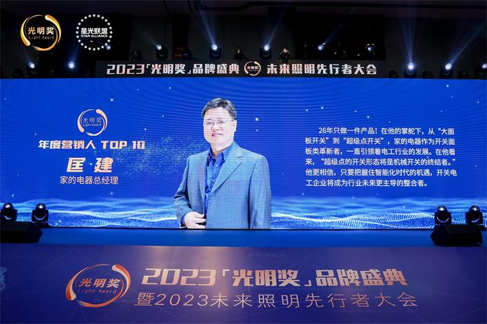 12月20日,2023“光明奖”中国照明灯饰行业年度品牌大会,于中山古镇盛大召开!会议现场揭晓了多个奖项,其中,中山市家的电器有限公司斩获“电工品牌TOP10”、“年度营销人TOP10”两大荣誉!