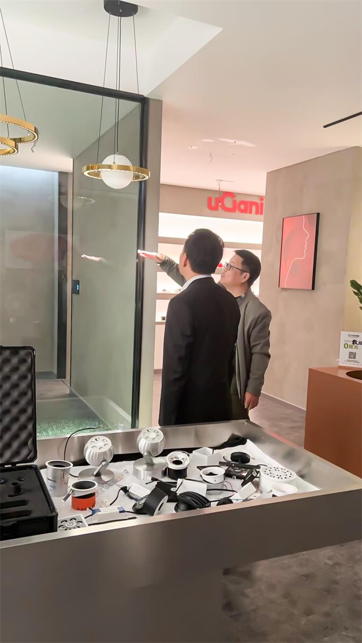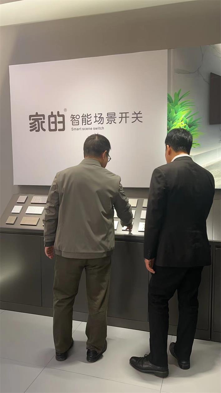 在家的公司总经理匡建的陪同下,镇长赖文盛参观了车间生产线、智能家居体验馆、优加尼照明展厅等。家的公司总经理匡建向其介绍了:公司发展历史,核心产品、技术,生产设备,生产流程,去年家的产业情况以及2024年计划等。