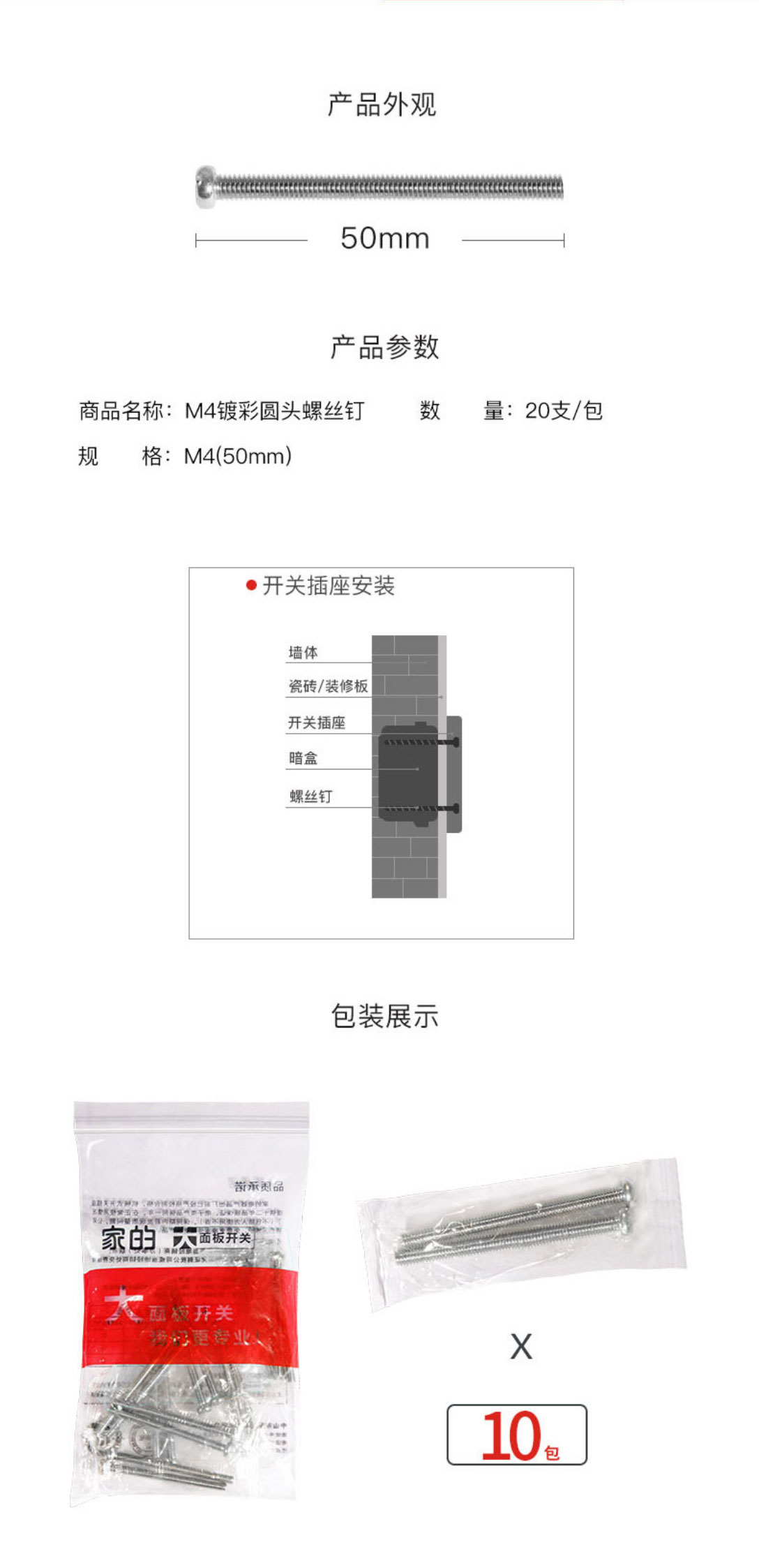 包装: 5公分加长螺丝*20个